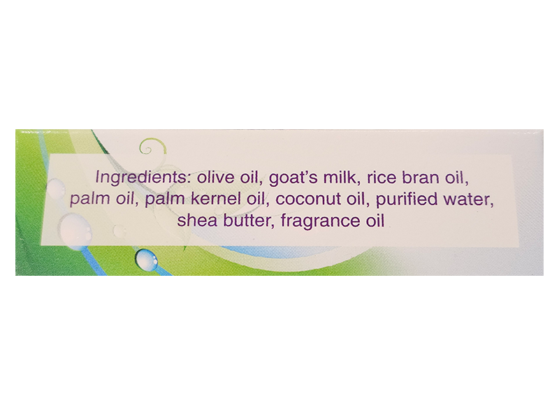 Ingredients: olive oil, goats milk, rice bran oil, palm oil, palm kernel oil, coconut oil, purified water, shea butter & fragrance oil.