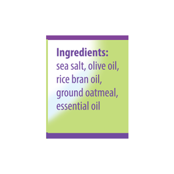 Ingredients: Dead Sea Salt, Olive Oil, Rice Bran Oil, Ground Oatmeal, & Lavender Essential Oil.