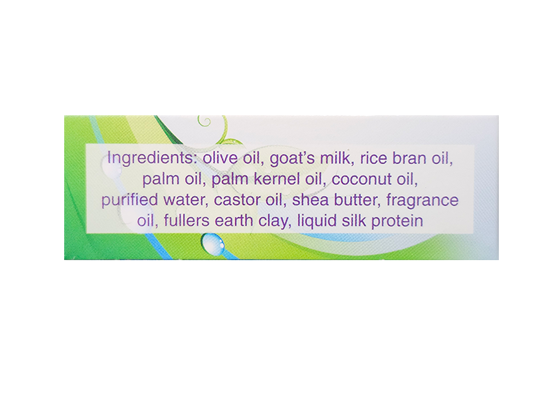 Ingredients: Rich Creamy Goats Milk, Olive Oil, Rice Bran Oil, Palm Kernel Oil, Palm Oil, Coconut Oil, Castor Oil, Shea Butter, Liquid Silk, Fullers Earth Clay, & Fragrance Oil