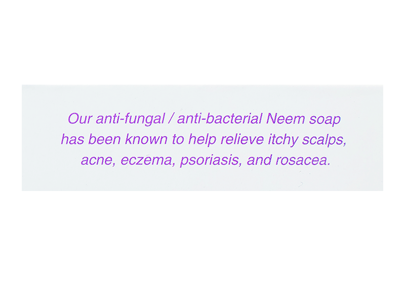 Neem Oil has been proven to be antiseptic, anti-viral, anti-fungal, anti-insect, anti-inflammatory, and anti-ulcer and has been used for centuries to treat eczema, psoriasis, rosacea, dermatitis, and acne. Our customers tell us this bar really makes a difference for their skin and scalp.