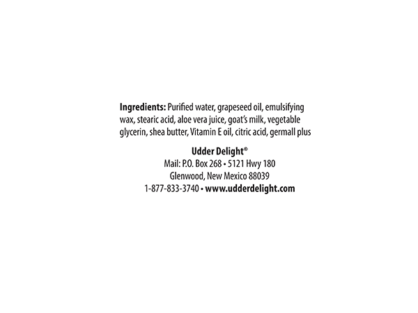 Ingredients: purified water, grape seed oil, emulsifying wax, stearic acid, aloe vera juice, goat's milk, rose hip oil, vegetable glycerin, shea butter, vitamin e oil, citric acid, germall plus (cosmetic preservative).