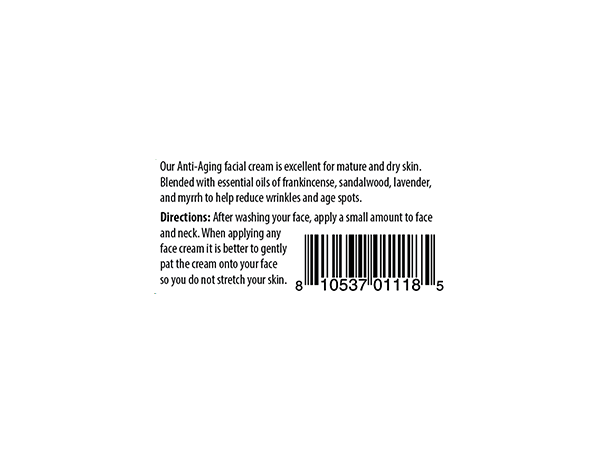 Our Anti-Aging face cream is excellent for mature or dry skin. The added blend of frankincense, sandalwood, lavender, and myrrh work together to fight and reduce the appearance of wrinkles and age spots. This specialized facial cream also contains CoQ10 and red palm oil to help combat the signs of aging, as well.