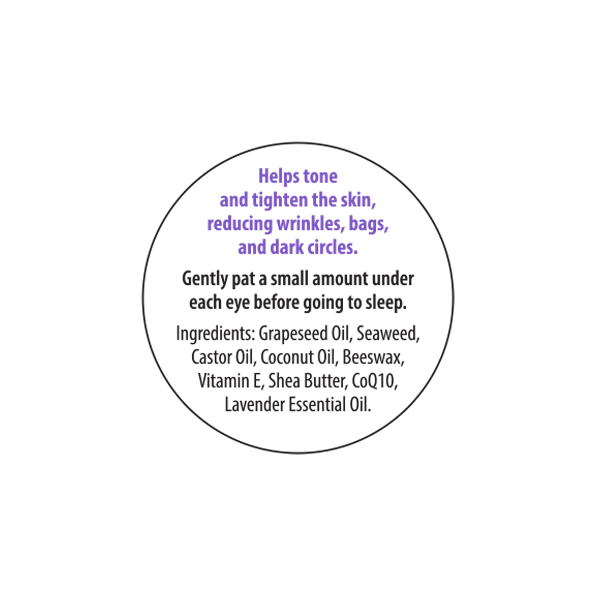 Helps tone & tighten the delicate skin under your eyes by reducing wrinkles, bags and dark circles. Apply a small amount by gently patting under each eye every night before going to bed. A little goes a long way and this small jar will last about 6-9 months.